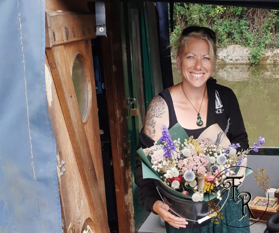 Steph is mostly based on the Wiltshire/Hampshire boarder between Salisbury and Andover, but sometimes on the Kennet and Avon canal from their Narrow Boat. She is a Mother Nature loving florist with a wild and natural style. Steph crafts bespoke floral bouquets and arrangements as gifts and for weddings, but has a particular passion for funeral flowers.